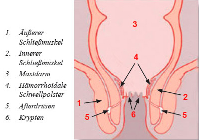 Der menschliche Darm ist in verschiedene Teile aufgeteilt. Er reicht vom Dünndarm über den Dickdarm in den Mastdarm und endet im After. Beim Übergang vom Mastdarm in den After befindet sich ein kreisförmiges Gefäßpolster, das auch als Hämorrhoidal-Schwellkörper bezeichnet wird. Dieses unterstützt den Schließmuskel des Afters in seiner Funktion und bietet eine zusätzliche Abdichtung des Analkanals.